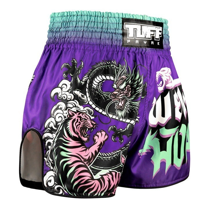 TUFF Payak Muay Thai Shorts Shadow & Flame Kickboxing Purple RMS012